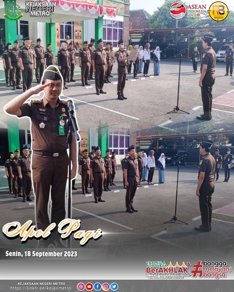 Kepala Seksi Bidang Intelijen Debi Resta Yudha, S.H.,M.H. Memimpin Pelaksanaan Apel Pagi bertempat di Halaman Kantor Kejaksaan Negeri Metro yang diikuti Oleh Para Kasi, dan seluruh pegawai.