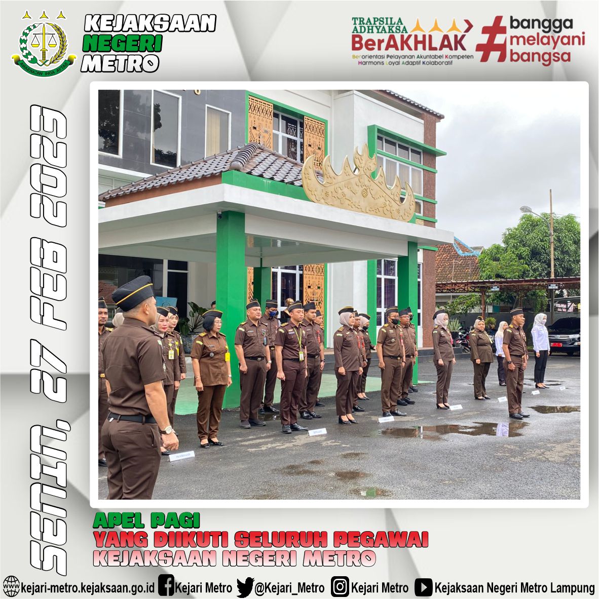 Kepala Seksi Bidang Tindak Pidana Khusus Bapak Tatang Hermawan, S.H., M.H. Memimpin Pelaksanaan Apel Pagi di Halaman Kantor Kejaksaan Negeri Metro yang diikuti Oleh Seluruh Pegawai dan Staff Honorer.