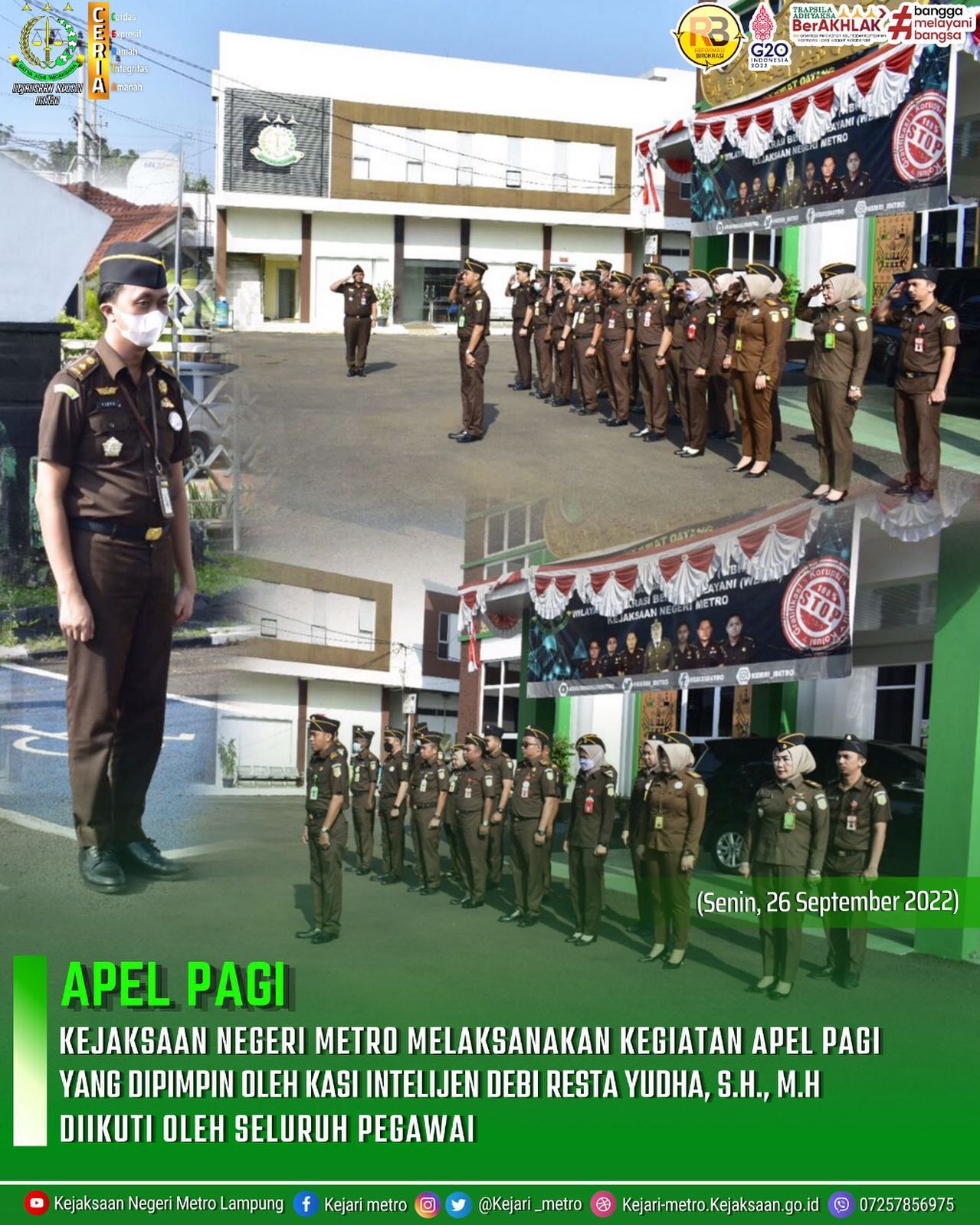 Kejaksaan Negeri Metro Melaksanakan kegiatan Apel pagi yang dipimpin oleh kasi Intelijen Debi Resta Yudha, S.H., M.H. diikuti oleh seluruh pegawai.