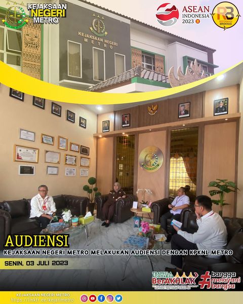 Kejaksaan by admin kejari July 11, 2023 0 Comments Audiensi dengan Kpknl metro Senin, 10 juli 2023 Kejaksaan Negeri Metro Melakukan Audiensi dengan Kpknl metro terkait pengenalan pejabat baru. admin kejari