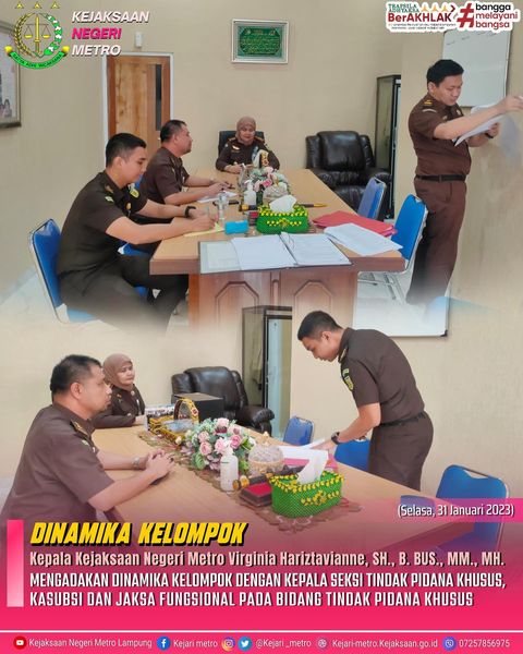 Kepala Kejaksaan Negeri Metro Virginia Hariztavianne, SH., B. BUS., MM., MH. Mengadakan Dinamika Kelompok Dengan Kepala Seksi Tindak Pidana Khusus, Kasubsi dan Jaksa Fungsional Pada Bidang Tindak Pidana Khusus.