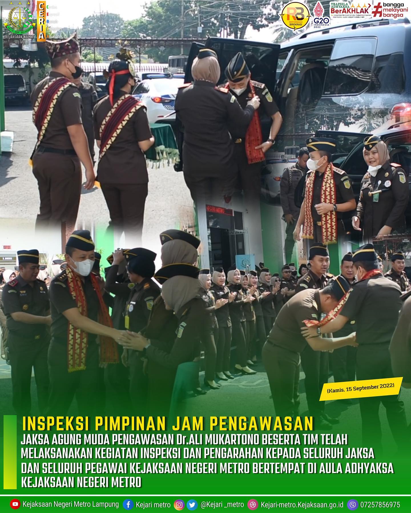 Jaksa Agung Muda Pengawasan Dr. Ali Mukartono Beserta Tim Telah Melaksanakan Kegiatan Inspeksi dan Pengarahan Kepada Seluruh Jaksa dan Seluruh Pegawai Kejaksaan Negeri Metro Bertempat di Aula Adhyaksa Kejaksaan Negeri Metro.