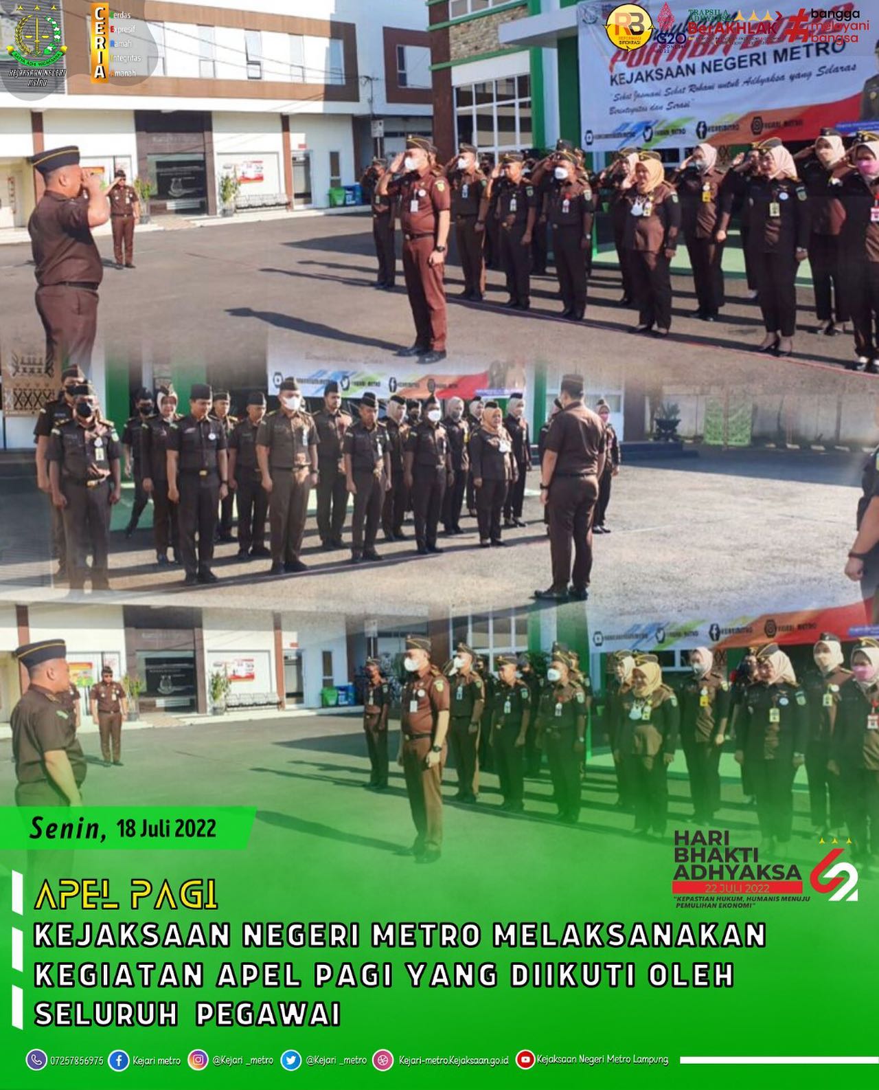 Kejaksaan by admin kejari July 19, 2022 0 Comments kegiatan apel pagi Kejaksaan Negeri Metro Senin, 18 Juli 2022Kejaksaan Negeri Metro melaksanakan kegiatan apel pagi yang diikuti seluruh pegawai. kejaksaan kejaksaanhebat kejaksaannegerimetro kejaksaanRB kejaksaanri kejari kejari metro kejarikotametro kejarimetro penguatanRB wbbm2022 wbk2022 admin kejari