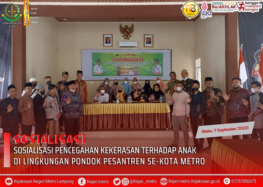 Kejaksaan Negeri Metro Mengisi Kegiatan Sosialisasi Pencegahan Kekerasan Terhadap Anak di Lingkungan Pondok Pesantren Se-Kota Metro.