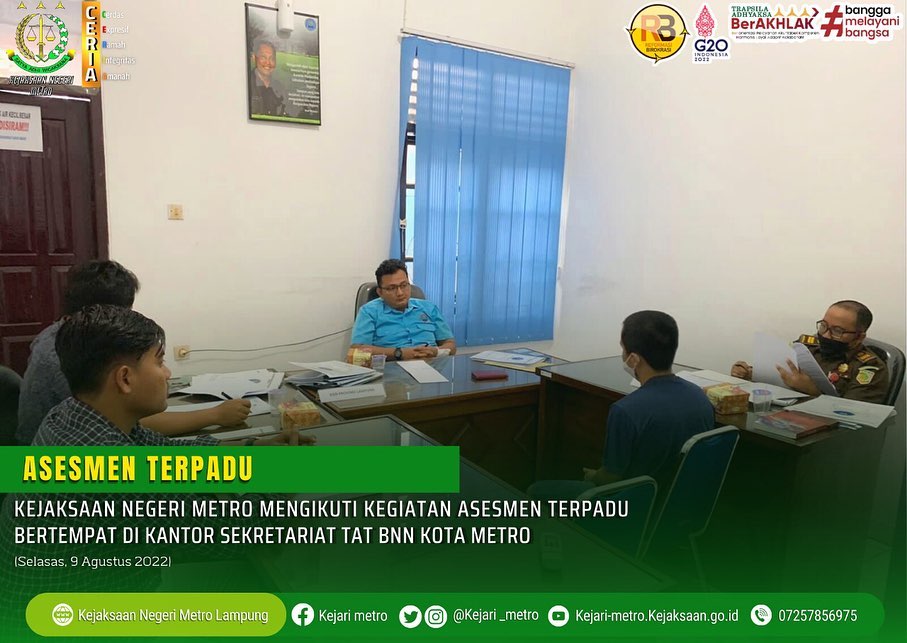 (Selasa, 9 Agustus 2022) Kejaksaan Negeri Metro mengikuti kegiatan asesmen terpadu bertempat di Kantor Sekretariat TAT BNN Kota Metro.