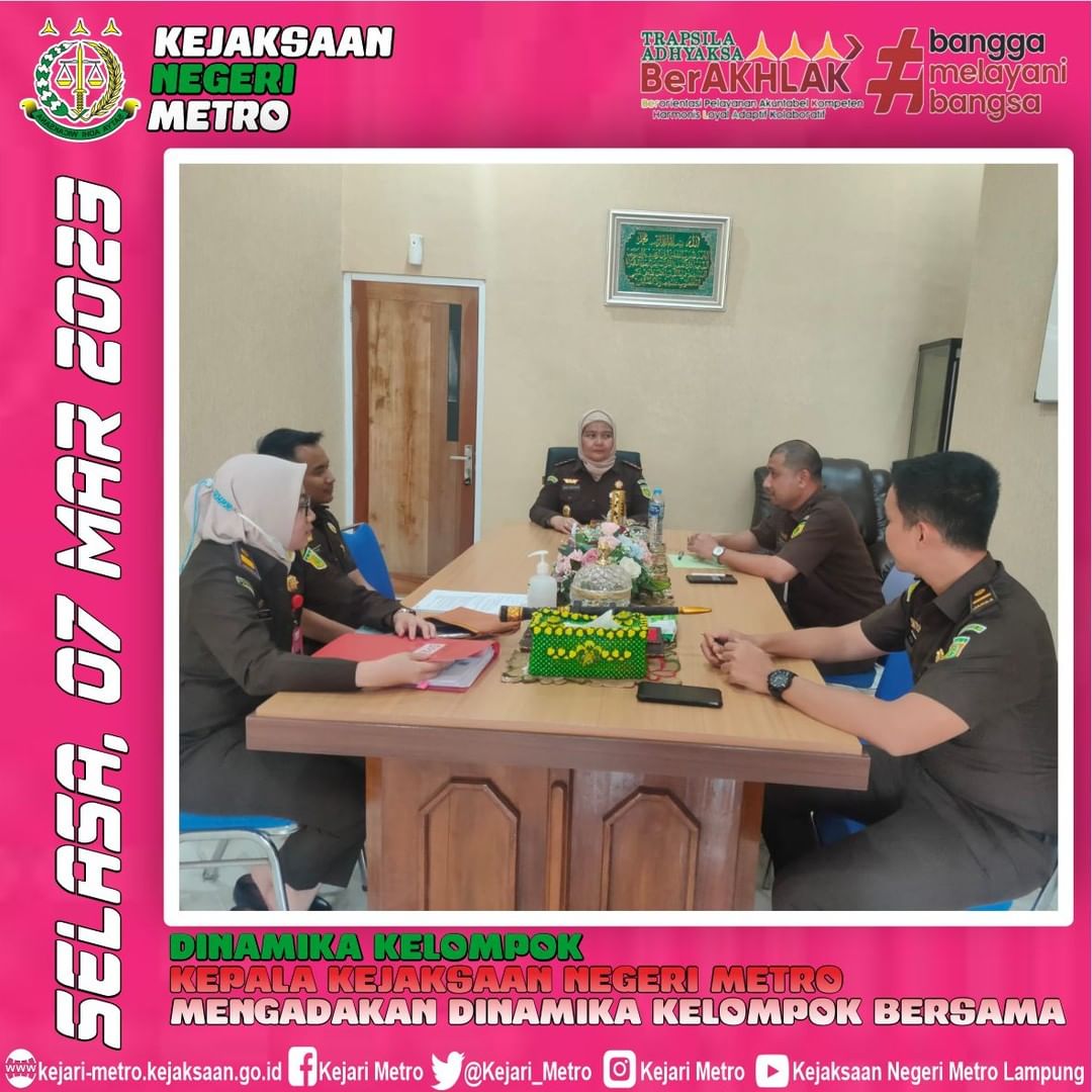Kepala Kejaksaan Negeri Metro Virginia Hariztavianne, SH., B. BUS., MM., MH. Kasi Pidsus,Kasubsi dan Jaksa Fung Mengadakan Dinamika Kelompok Bersama Tindak Pidana Khusus dan Jaksa Fungsional Pada Kejaksaan Negeri Metro.