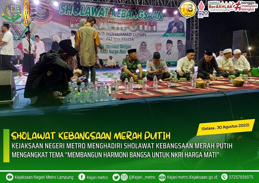 Kejaksaan Negeri Metro menghadiri Sholawat Kebangsaan Merah Putih mengangkat Tema; “Membangun Harmoni Bangsa untuk NKRI Harga Mati”.