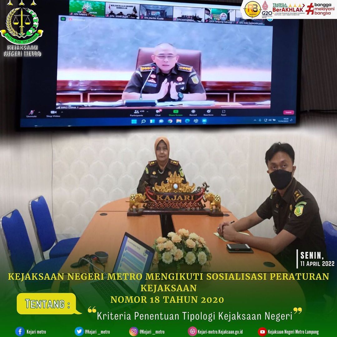 Hari Senin 11 April 2022 Kejaksaan Negeri Metro Mengikuti Video Conference Sosialisasi Peraturan Kejaksaan Nomor 18 Tahun 2020 Tentang : Kriteria Penentuan Tipologi Kejaksaan Negeri.
