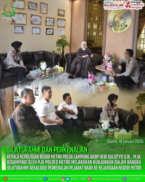 Kepala Kepolisian Resor Metro Polda Lampung AKBP Heri Sulistyo S.IK., M.IK. Didampingi Oleh PJU Polres Metro Melakukan Kunjungan Dalam Rangka Silaturahmi Sekaligus Perkenalan Pejabat Baru Ke Kejaksaan Negeri Metro.