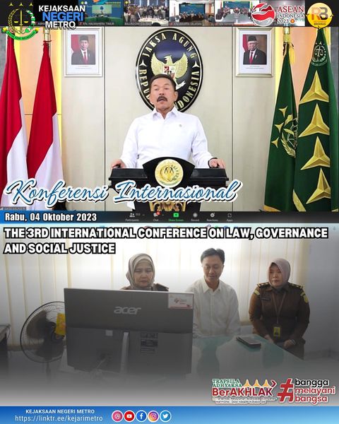 Pada hari ini Rabu, 04 Oktober 2023 Kejaksaan negeri Metro Mengikuti Konferensi Internasional The 3rd International Conference On Law, Governance and Social Justice oleh Fakultas Hukum Universitas Jenderal Soedirman dan Bapak Jaksa Agung RI Burhanuddin bertindak sebagai Keynote Speech