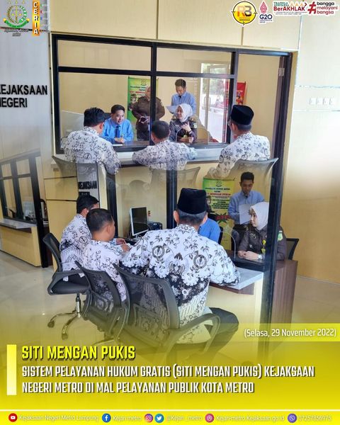 Sistem Pelayanan Hukum Gratis (Siti Mengan Pukis) Kejaksaan Negeri Metro Di Mal Pelayanan Publik Kota Metro.