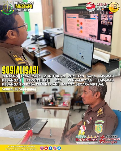 Kejaksaan Negeri Metro Mengikuti Sosialisasi Tentang Tata Cara Monitoring Kualitas Data Laporan Keuangan Rekonsiliasi dan Penyampaian laporan Keuangan Kepada Kementrian Lembaga Serta dalam rangka Monitoring dan Evaluasi Pelaksanaan Anggaran Pada Satuan Kerja Secara Virtual.