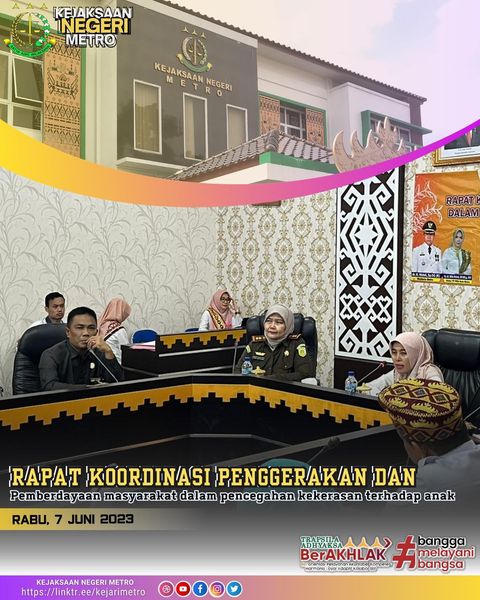 Kepala Kejaksaan Negeri Metro Virginia Hariztavianne, SH., B. BUS., MM., MH. Menjadi Narasumber dalam rapat koordinasi penggerakan dan pemberdayaan masyarakat dalam pencegahan kekerasan terhadap anak.