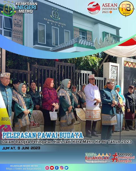 Kepala Kejaksaan Negeri Metro Virginia Hariztavianne, SH., B. BUS., MM., MH. mengikuti acara pelepasan pawai budaya dalam rangkat peringatan hari jdi kota metro ke 86Tahun 2023 bertempat di depan rumah dinas walikota metro.