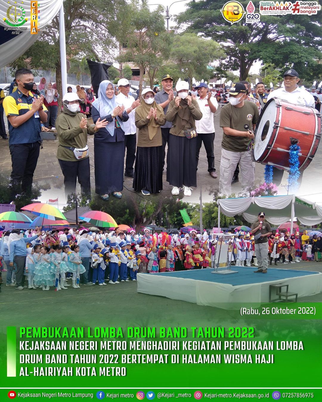 Kejaksaan Negeri Metro Menghadiri Kegiatan Pembukaan Lomba DrumBand Tahun 2022 Bertempat di Halaman Wisma Haji AL-Hairiyah Kota Metro.