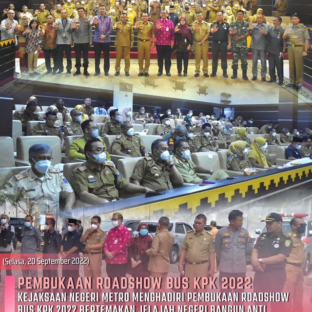 Kejaksaan Negeri Metro Menghadiri Pembukaan Roadshow Bus KPK 2022 bertemakan Jelajah Negeri bangun Anti Korupsi Kota Metro Oleh KPK RI.