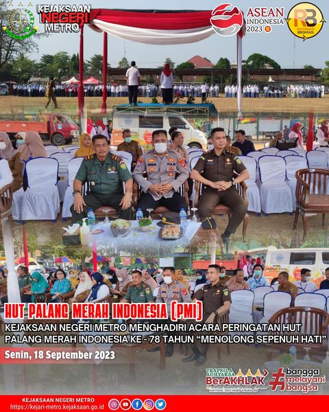 Pada Hari jnj Senin, 18 September 2023. Kejaksaan Negeri Metro Menghadiri Acara Peringatan HUT Palang Merah Indonesia (PMI) Ke – 78 Tahun dengan Mengusung Tema; “Menolong Sepenuh Hati”.