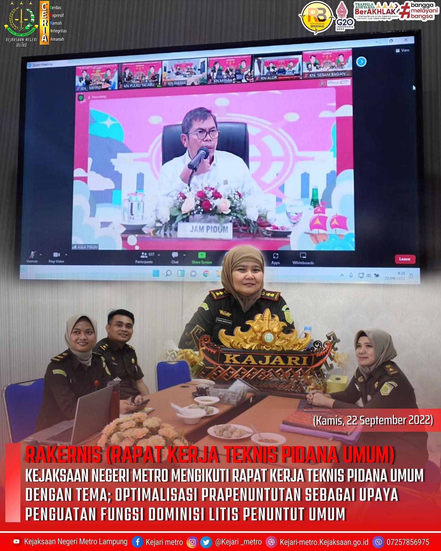 Kejaksaan Negeri Metro Mengikuti Rapat Kerja Teknis Pidana Umum dengan tema; Optimalisasi Prapenuntutan Sebagai Upaya Penguatan Fungsi Dominisi Litis Penuntut Umum.