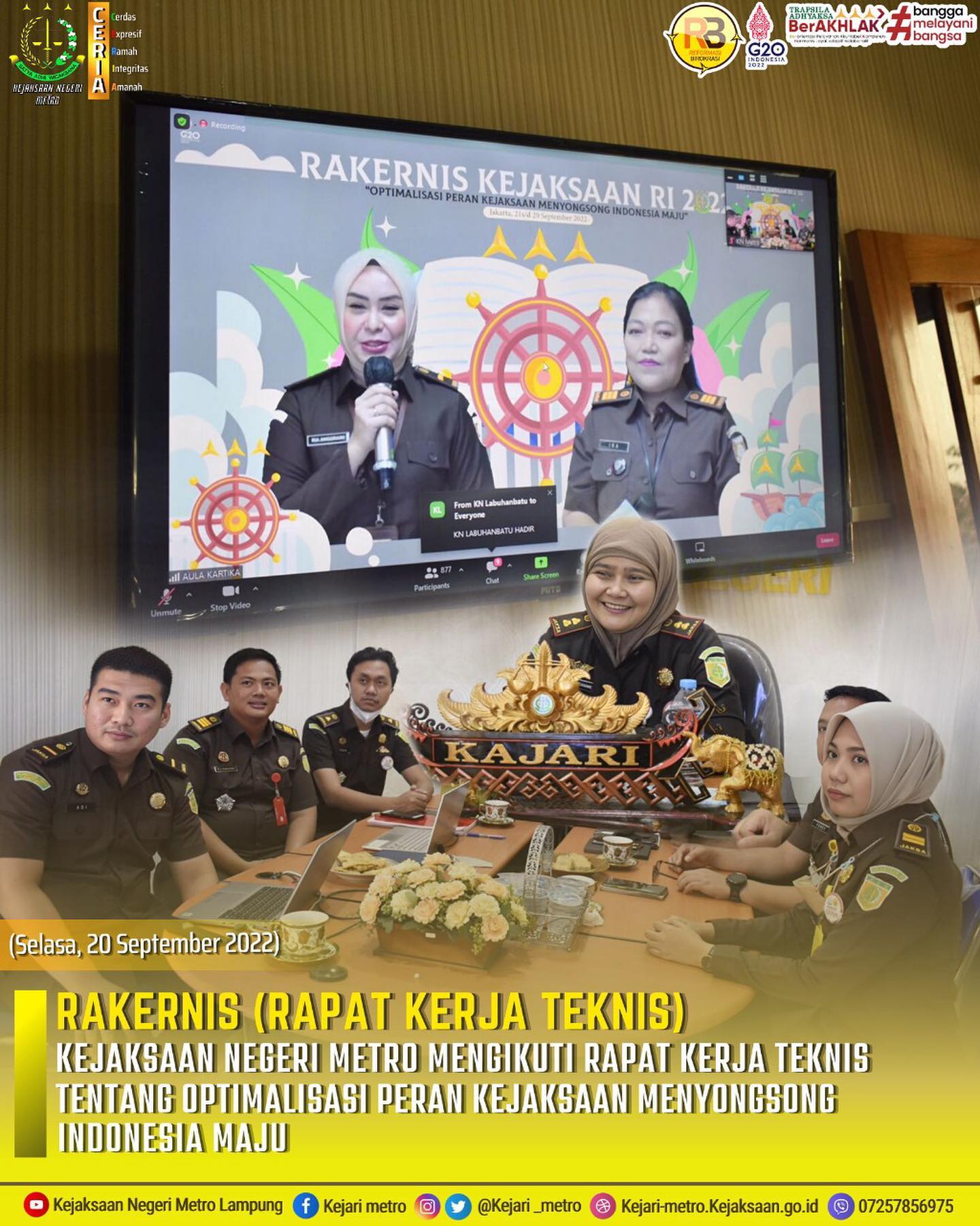 Kejaksaan Negeri Metro mengikuti Rapat Kerja Teknis (RAKERNIS) tentang Optimalisasi Peran Kejaksaan Menyongsong Indonesia Maju.