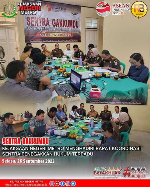pada hari selasa, 26 september 2023, kejaksaan negeri metro menghadiri rapat koordinasi sentra penegakkan hukum terpadu (Sentra Gakkumdu) di kota metro.