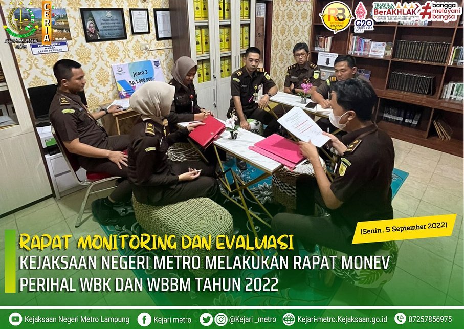 Kejaksaan Negeri Metro Melakukan RAPAT MONEV Perihal WBK dan WBBM Tahun 2022.