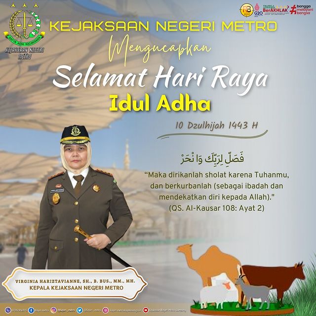 Kejaksaan Negeri Metro beserta jajarannya mengucapkan Selamat Hari Raya Idul Adha 10 dzulhijah 1443 H/ 2022 M.