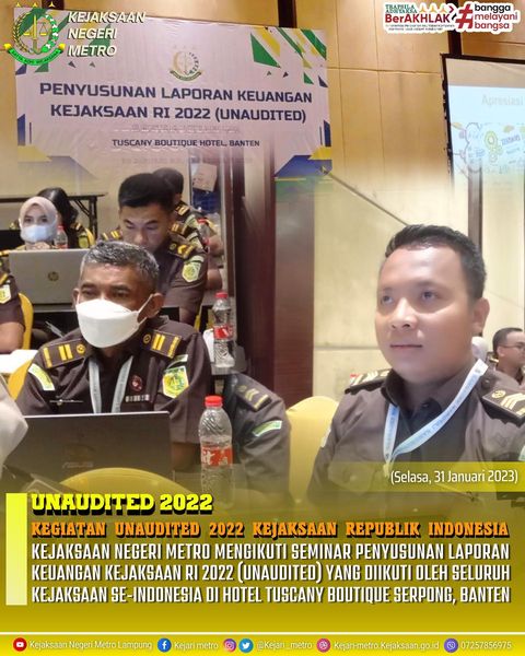 Kejaksaan Negeri metro Mengikuti Seminar Penyusunan Laporan Keuangan Kejaksaan RI 2022 (Unaudited)Yang Diikuti Oleh Seluruh Kejaksaan Se-Indonesia di Hotel Tuscany Boutique Serpong, Banten Tanggerang Selatan.