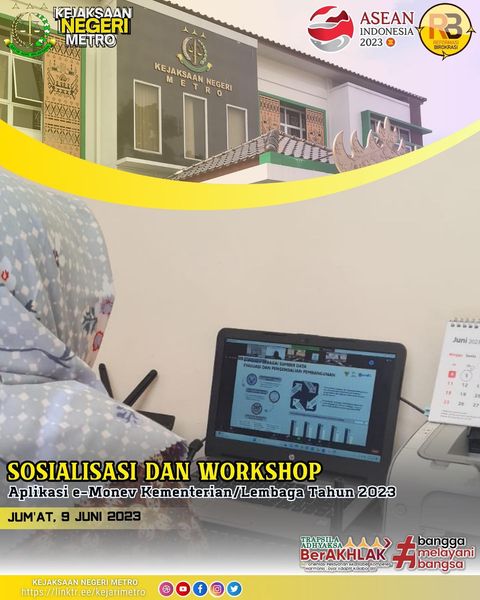 kejaksaan negeri metro mengikuti sosialisasi dan workshop aplikasi E-Monev kementrian/lembaga Tahun 2023 secara virtual.