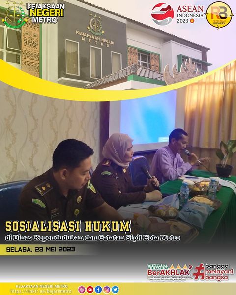 Kejaksaan Negeri Metro Menjadi Narasumber dalam kegiatan Sosialisasi Hukum di Dinas Kependudukan dan Catatan Sipil Kota Metro.