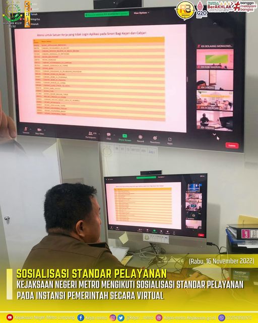 Kejaksaan Negeri Metro Mengikuti Sosialisasi Standar Pelayanan Pada Instansi Pemerintah Secara Virtual.