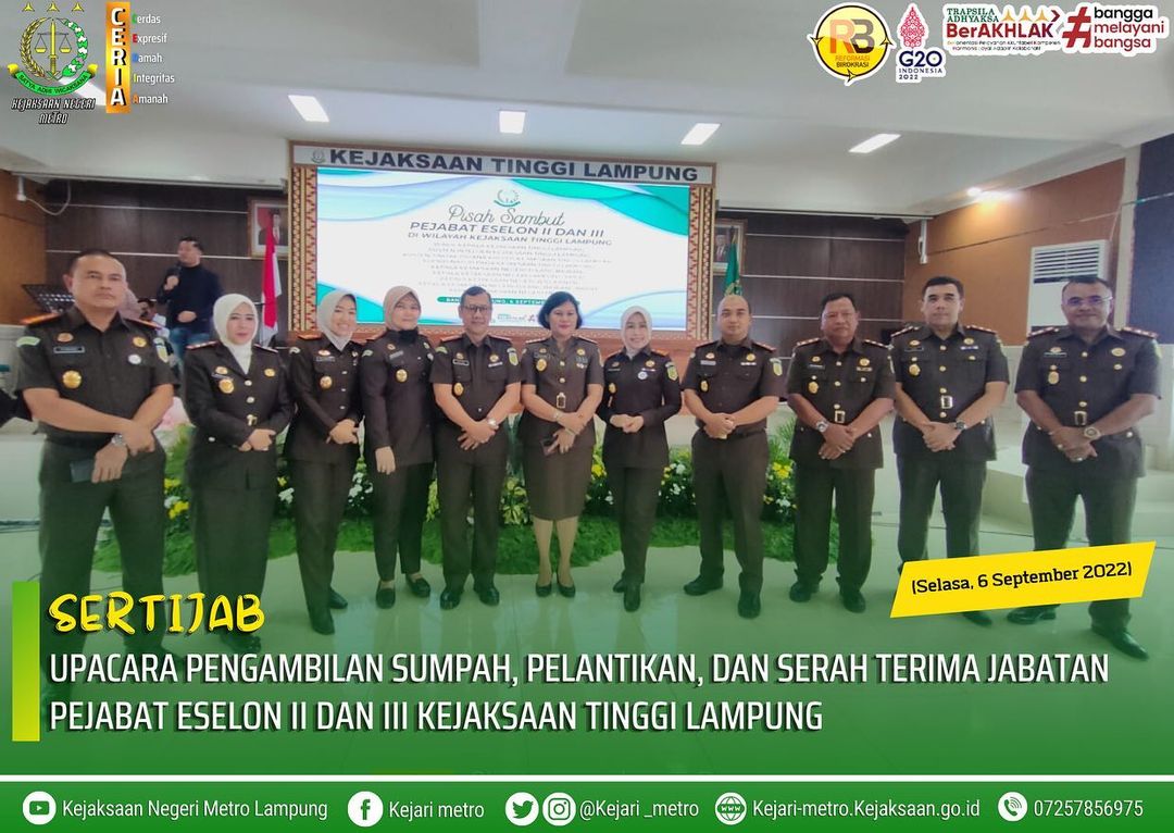 Kepala Kejaksaan Negeri Metro menghadiri UPACARA PENGAMBILAN SUMPAH, PELANTIKAN, DAN SERAH TERIMA JABATAN PEJABAT ESELON II DAN III KEJAKSAAN TINGGI LAMPUNG.