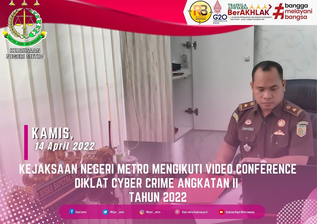 Kejaksaan by admin kejari April 20, 2022 0 Comments Video Conference Diklat Cyber Crime Angkatan II Tahun 2022. Kamis, 14 April 2022Kejaksaan Negeri Metro Mengikuti Video Conference Diklat Cyber Crime Angkatan II Tahun 2022. kejaksaan kejaksaanhebat kejaksaannegerimetro kejaksaanRB kejaksaanri kejari kejari metro kejarikotametro kejarimetro penguatanRB wbbm2022 wbk2022 admin kejari